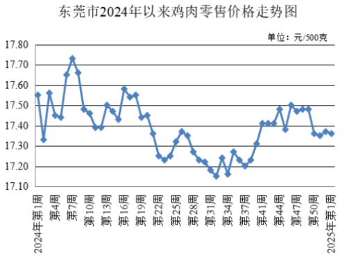 本周牛肉農(nóng)貿(mào)市場平均零售價格46.86元,較上周下降0.30%。牛腩農(nóng)貿(mào)市場平均零售價格43.50元,較上周下降0.21%。雞肉農(nóng)貿(mào)市場平均零售價格17.36元,較上周下降0.06%。