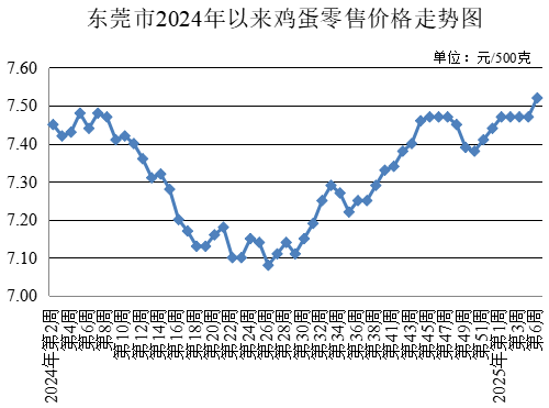 第6周,雞蛋農(nóng)貿(mào)市場(chǎng)零售均價(jià)為每500克7.52元,較春節(jié)前一周上升0.67%。